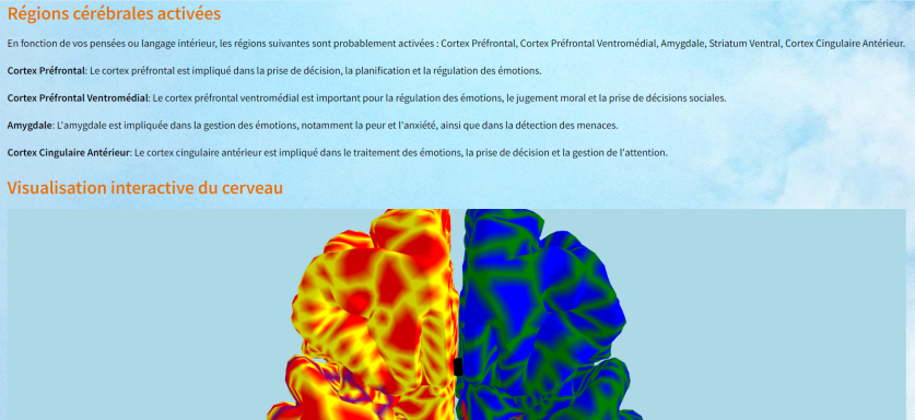The Neuro Analysis module visualizes brain activity during mental health assessments, providing a dynamic map of neural activation. By correlating brain activity with specific mental health conditions—such as Anxiety, Depression, PTSD, and ADHD—this feature offers a holistic perspective on mental health. Neuro Analysis supports diagnosis, monitors treatment efficacy, and enables task-based assessments to evaluate cognitive and emotional responses in real time.